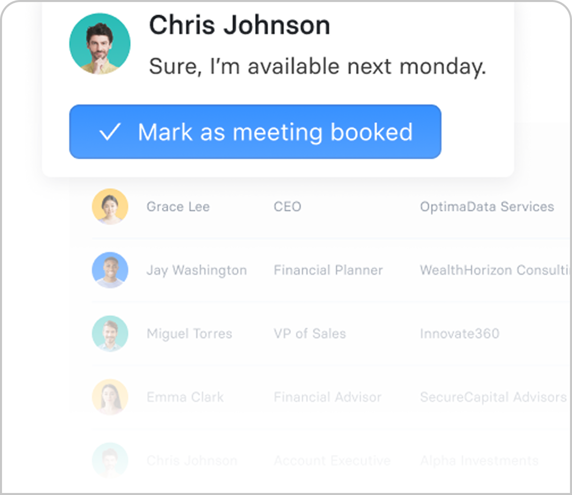Easily track your confirmed meetings and send it directly to your CRM.